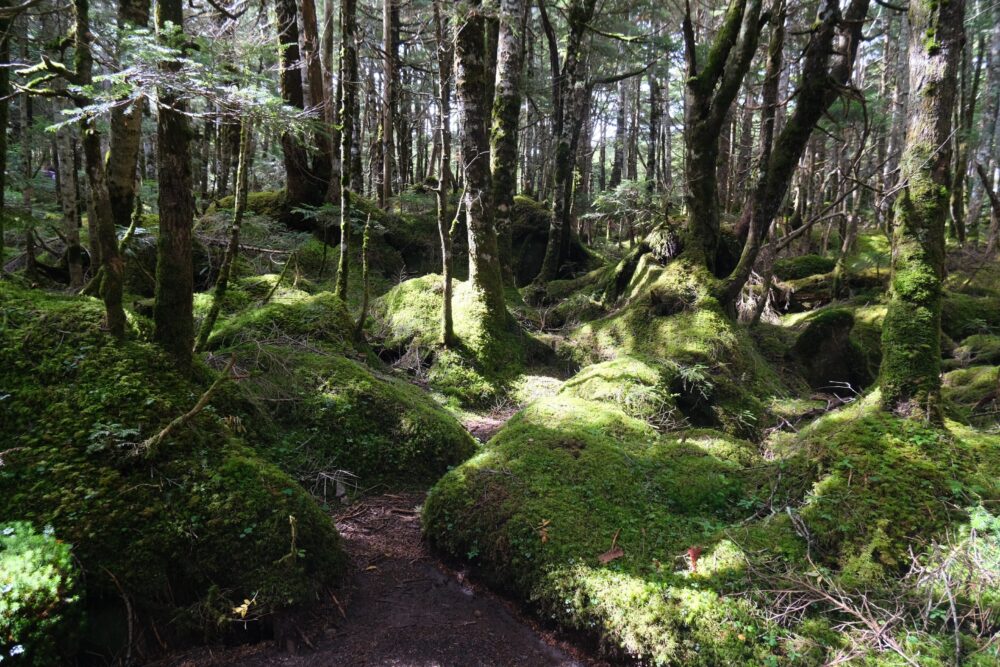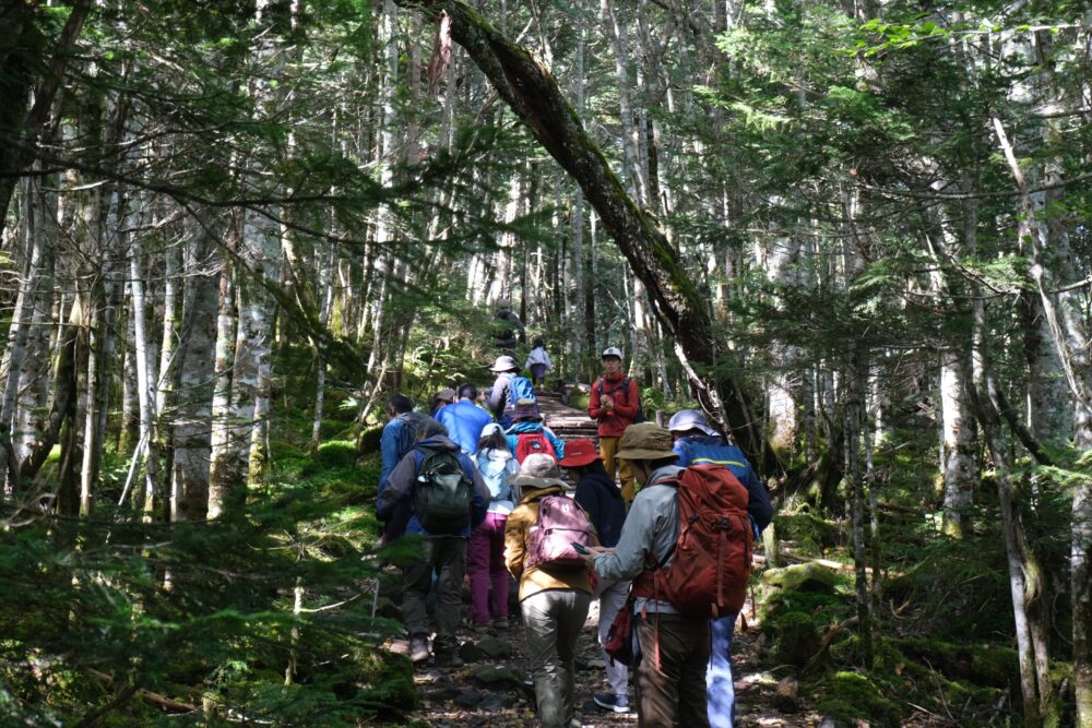 ガイドさんから苔などのお話をききながら