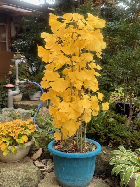 実家の父の鉢植えの銀杏の木もまっ黄色です。