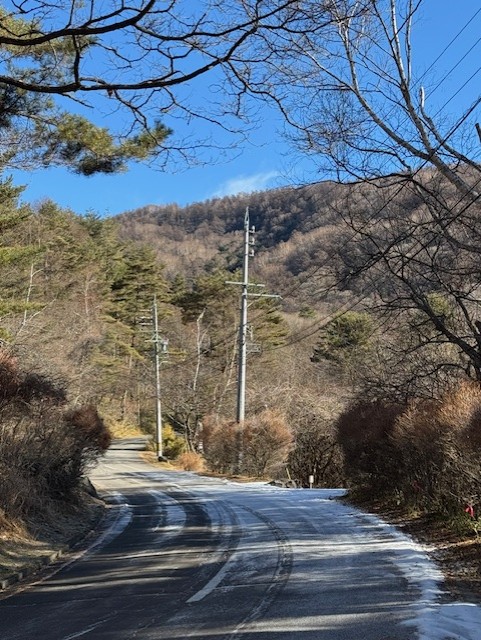 ペンションベルクコットさん前の道です。