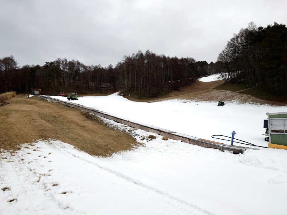 自然降雪がまだほとんどないのでメインゲレンデを重点的に行っているようです。