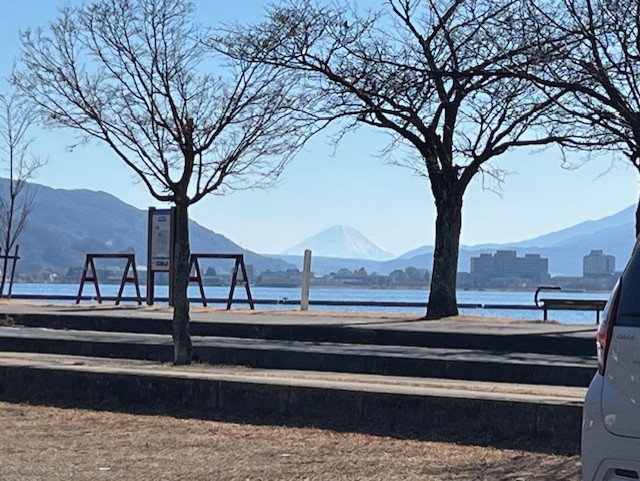 快晴で諏訪湖の向こうに冨士山が見えました!