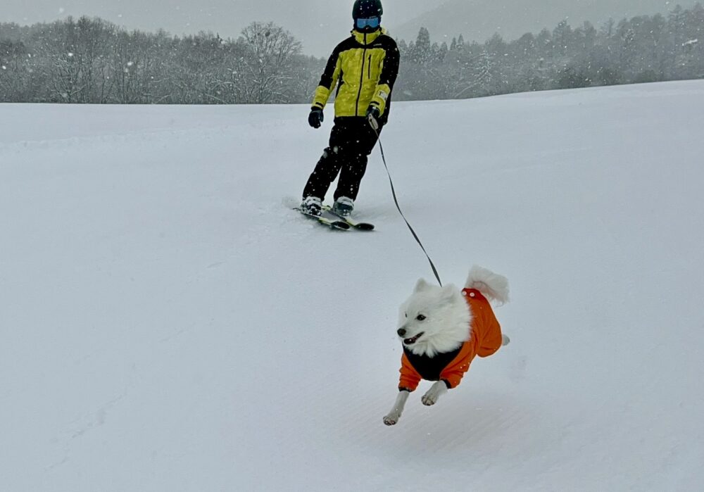 趣味はゴルフ、スキーです。1年中自然とワンちゃんと仲良く遊んでいます。