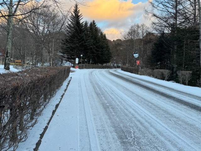 路面が凍結しておりますので、お越しの際は十分に注意してお出かけくださいませ。