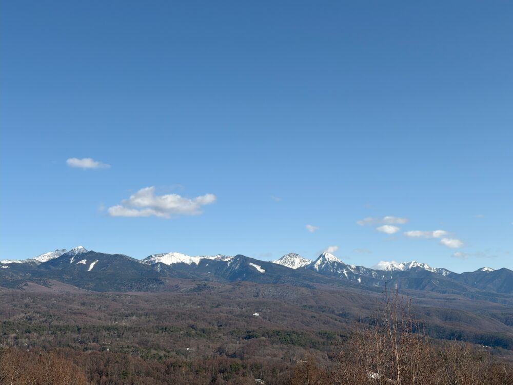 今日はいい天気でした。八ヶ岳も上部だけ雪が残り、春らしい山の景色になっています。